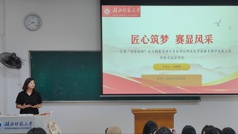 为进一步发挥全国性高水平赛事的示范引领作用,深化教学实践成果,总结参赛经验、凝练教学智慧,并推动优质教育资源的共建共享,教育科学学院于10月10日成功举办了以“匠心筑梦,赛显风采”为主题的全国“田家炳杯”全日制教育硕士专业学位研究生学前教育教学技能大赛经验交流分享会。分享会由我院学前教育专业硕士点负责人刘妍慧老师主持,本院学前教育专业研一及研二20余名研究生参会。