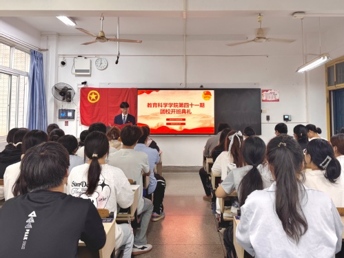 10月17日,全体团校学员参加了开班典礼,在老师们的带领下了解了团校整体安排流程以及团校纪律。此次团校活动共三讲理论培训,第一讲是由周家吉授课,他以《聚焦团务提质量,奋进启航新征程》为主题,从共青团的基本概况、基层团组织的职能与任务、湖师团委的主要工作三个维度讲解,让学员对共青团有了更清晰的认知,同时也鼓励学员们积极参与团组织活动,提升个人综合素质和能力水平。第二讲刘丽娟以《共青团的光辉历史与团的精神》为核心内容,带领团校学员回顾了共青团自成立以来的峥嵘岁月,讲述了团的精神内核,让团校学员们深刻感受到共青团始终与党同心、与人民同行的坚定信念,鼓励大家以实际行动践行团员的初心与担当。第三讲吕经纬以《改革的时代续篇现代化的时代新篇》为主题,梳理了改革开放在经济、政治、文化、社会等各领域取得的辉煌成就,解读了中国式现代化的内涵、特征与本质要求。进一步深化了学员们对改革开放伟大历程和中国式现代化宏伟蓝图的认识与理解,激发了大家的爱国热情和历史使命感。团校的学习还融入了丰富多彩的观影活动和第二课堂。全体学员在组织下观看了电影《志愿军:雄兵出击》,在第二课堂中进行了“看图猜历史人物”、“emoji大挑战”和“看片段猜电影”等一系列趣味活动,加深对知识理解的同时也增进了学员间的友谊。团校学习结束后,教育科学学院团委组织部举行了第四十一期团校结业考试,以考察同学们的学习成果并检验教学成效。10月31日,全体团校学员参加了第四十一期团校结业典礼,结业典礼对优秀学员和结业学员予以表彰,最后,刘广兵对本次团校进行总结发言,鼓励学员们将此次团校的收获内化于心、外化于行,在日常学习中践行团的精神。
