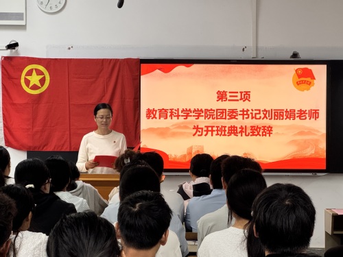 为了加强青年学生思想引领,提升思想政治素质。10月17日下午,教育科学学院团委组织部在教育大楼1207举行第四十一期团校开班典礼暨第一讲。出席本次典礼的嘉宾有校团委副书记周家吉,教育科学学院学工办主任秦姗姗,教育科学学院团委书记刘丽娟,教育科学学院辅导员夏青腾、吕经纬。参加本次培训的有组织部全体人员和全体团校学员。本次典礼由组织部副部长张梦阳主持。