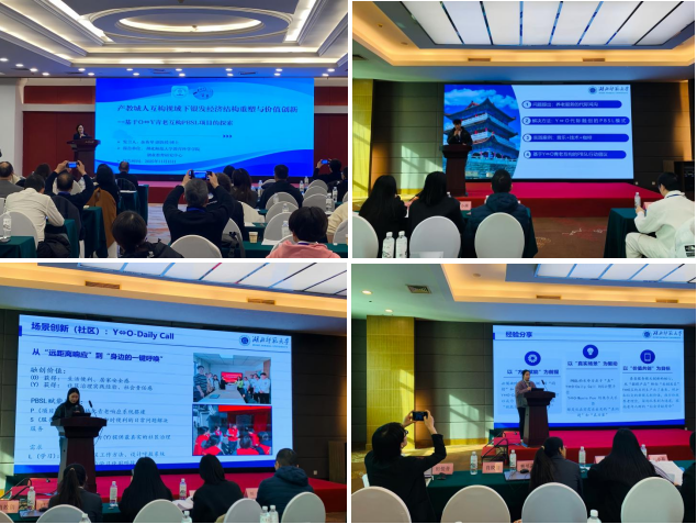 在银发经济创新会议上,余秀琴副教授作了题为《产教城人互构视域下银发经济结构重塑与价值创新--基于Y⇔O青老互构PBSL项目的探索》报告,介绍了我校产教城人PBSL人才培养模式。该模式以“产业需求-教育供给-城乡发展-个体成长”四维互构的真实场景为基石,以项目式服务型学习(Project Based Service-Learning,简称PBSL)培养高阶人才。历经五年探索,该模式已指导近百个本硕PBSL项目团,成功孵化出十多个可持续运营的项目工作室和实体公司,多项成果获各级各类创新创业大赛奖项。在银发经济领域,该模式聚焦“供需错配”与“教用脱节”双重结构性困境,通过“Y-O青老互构”项目,将真实养老问题转化为学习与实践载体,重构流程与评价,实现理论-实践、学习-服务、课堂-社会、专业-职业的“四重贯通”。有效推动学生成长为具备高阶思维和行动力的适配型人才,并促进高校协同政校企研力量,共同优化中国式积极养老体系。