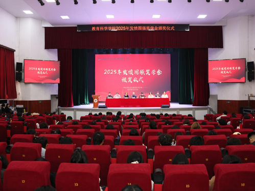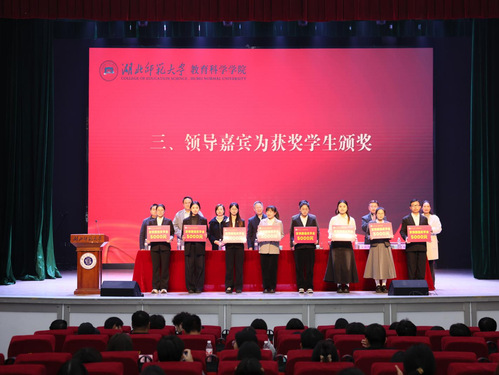 为表彰先进,鼓励学生发愤图强、积极向上。12月11日下午,教育科学学院在湖北师范大学大礼堂举办了“2025年发愤图强奖学金”颁奖仪式。教育科学学院名誉院长涂艳国,学工部、人武部部长杨志丹,校友工作处处长陈敬道,教育科学学院全体领导班子成员、班主任代表、学工办全体成员出席仪式。仪式由教育科学学院党委副书记刘广兵主持。