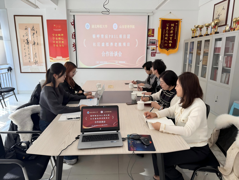 (图为“银呼青应”PBSL项目团成员在山东管理学院开展项目合作洽谈)
