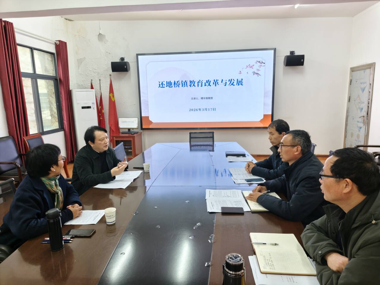 为深度凝练乡村教师队伍建设实践经验、系统破解乡村教育优质均衡发展瓶颈,充分发挥湖北省人文社科重点研究基地智库服务与科研引领功能,近日,基础教育高质量发展研究中心邹从容名师工作室团队赴大冶市还地桥镇中心学校开展乡村教师发展学校建设专项指导。本次活动特邀基础教育领域资深专家、原湖北省教育科学研究院常务副院长傅华强教授共同参与。还地桥镇中心学校领导班子、学科教研骨干、各校区负责人参会交流。