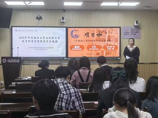 智汇青春,创享未来。为深入贯彻落实将创新创业教育贯穿人才培养全过程的要求,进一步激发青年学子创新创业热情,提升学生跨学科综合实践创新能力,教育科学学院于4月20日晚在教育大楼1316和1317会议室成功举办中国国际大学生创新大赛(2026)院赛。本次大赛特邀教育科学学院教授刘爱楼参加活动并担任评委。
